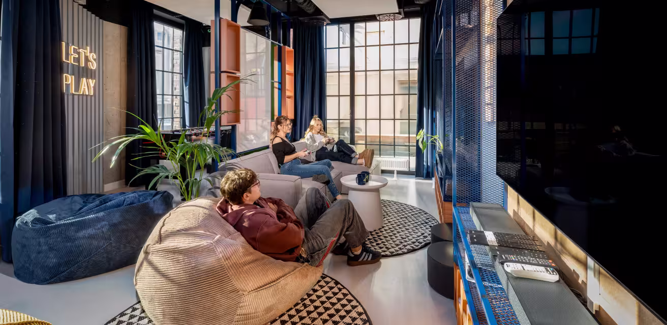 W StudentSpace poznasz nowych przyjaciół i stworzysz masę wspomnień dzięki przestrzeniom integracyjnym! Znajdziesz tu przestronne kuchnie do wspólnego gotowania, strefy work & chill do nauki, pracy i odpoczynku czy strefy kinowe. Game roomy zapewnią rozrywkę, a siłownia i strefa fitness pomogą zachować formę i energię każdego dnia.